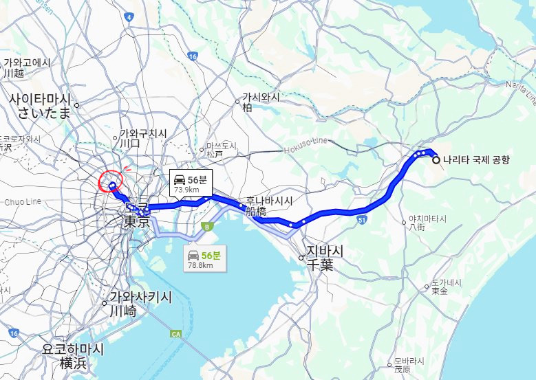 공항버스가 나리타 공항에서 탑승하면~